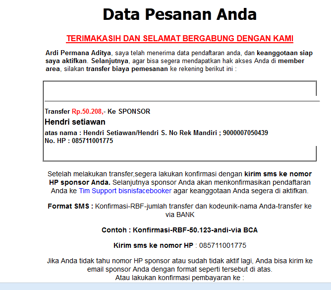 4. maka pemesanan berhasil terkirim kepada Saya. untuk itu agar proses cepat sobat sms/telp ke nomor saya 085711001775 untuk melakukan konfirmasi pembayaran.