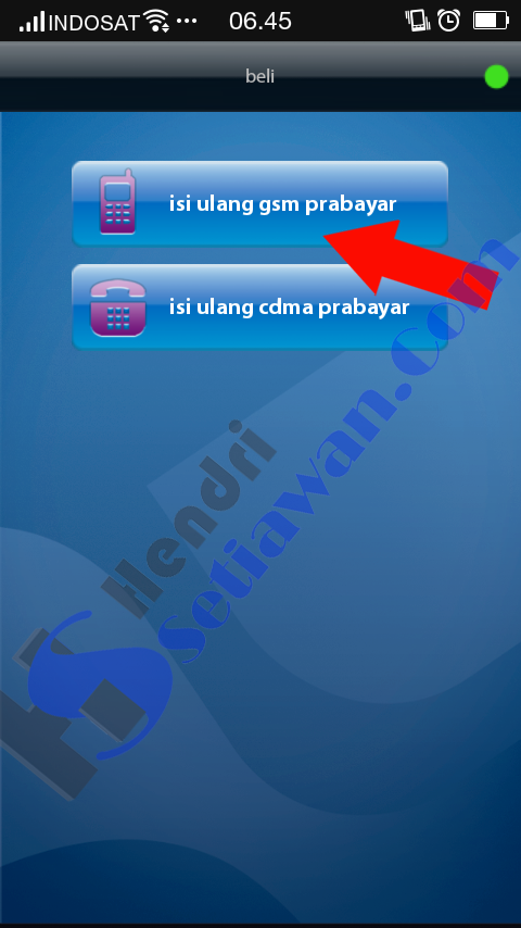 3. Pastikan indikator berwarna hijau, ini menandakan bahwa terdapat sinyal internet. kemdian Pilih Menu beli