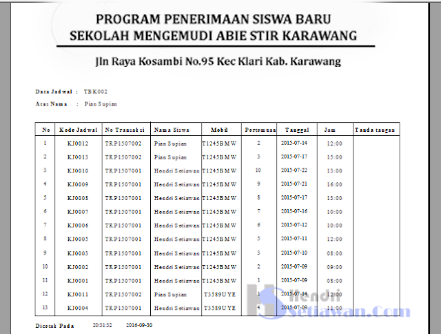 Setelah Kita melihat Contoh Program Aplikasi Penerimaan Siswa BAru Sekolah Mengemudi Menggunakan Visual basic,
