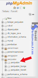 5. Represh laman (f5), lihat lagi menu dan cari database Penjualan tadi