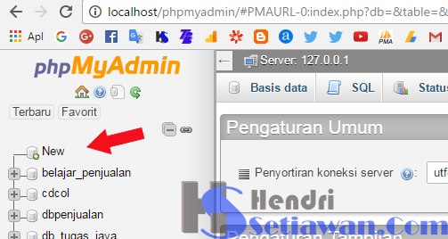 4. Buat basis data, contoh Penjualan dan klik Buat
