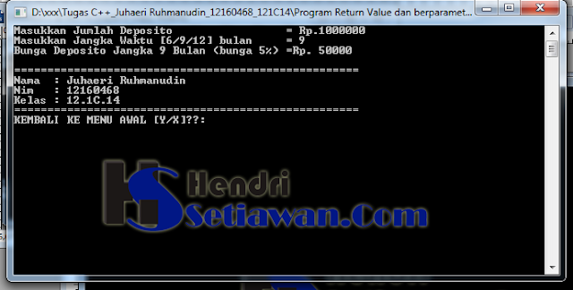 Dalam pembahasan kali ini saya akan membagikan Contoh Program Penghitungan Bunga Deposito Bank dengan Fungsi Return Value dan fungsi berparameter menggunakan pemrograman C++. Ini adalah program sederhana yang dibuat untuk memenuhi tugas mata kuliah Algoritma dan pemrograman.