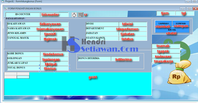 Setelah kita melihat Contoh Program aplikasi penggajian PT HOYAMA menggunakan visual basic 6.0, selanjutnya kita lihat form penghitungan bonus.