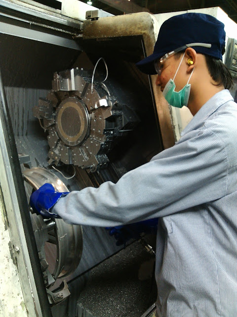 Training center sudah selesai dan saatnya saya merasakan untuk pertama kalinya bekerja disebuah pabrikan, sangat bersemangat walaupun belum terbiasa dengan mesin-mesin tempat saya bekerja. Ditempatkan sebagai oprator produksi untuk menjalankan mesin pembuatan wheel/velg motor, ternyata proses ini dijalankan oleh mesin yang canggih buatan jepang, saya hanya memasukan wheel mentah kedalam mesin, menekan tombol start dan menunggu selama 3 menit setelah itu mesin terbuka dan mengambil wheel dari dalam mesin untuk diproses di line selanjutnya.