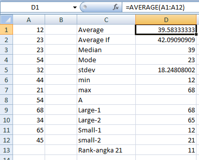 Jawab : =Average(A1:A12) , maka haslinya adalah 39.583