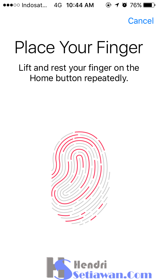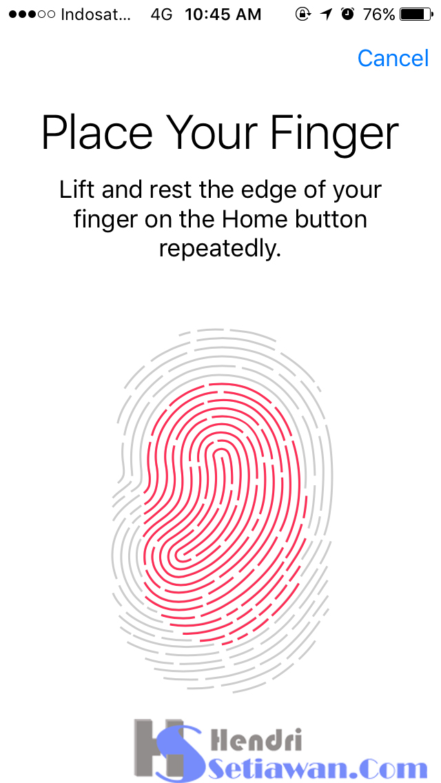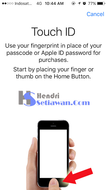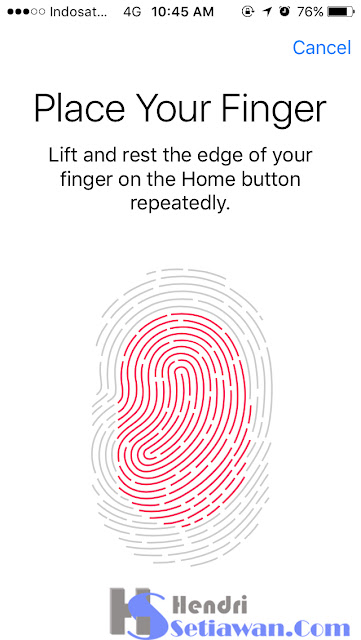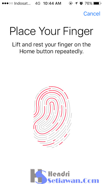 4. Kemudian letakkan sidik jari anda pada Home Button, pilih sidik jari jempol, jari manis atau apapun terserah anda.