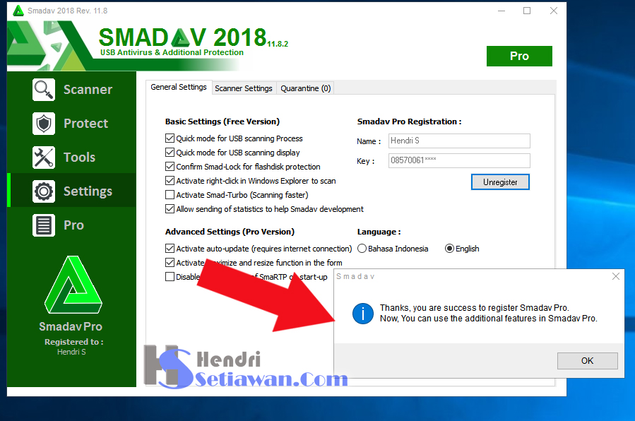 5. Maka SMADAV PRO anda sudah aktif