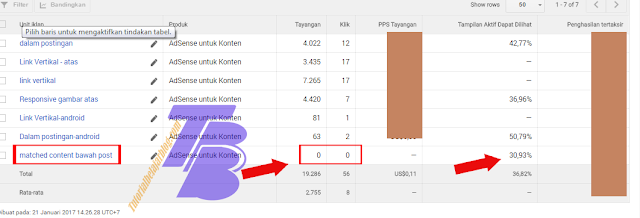 Saya membuat iklan matched content ini pada tanggal 17 januari dan dicoba perkembagannya hingga tanggal 21 januari (selama 4 hari). Berikut ini adalah rinciannya ;