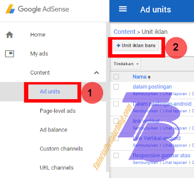 2. Lihat bilah menu samping Pilih My Ads > Ad Unit > Unit Iklan baru (New ad unit)