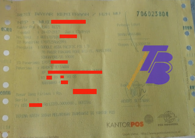 - Nama Pengirim : Google Asia Pasific, Negara : Singapura (tergantung pada tanda terima pembayaran Adsense anda)