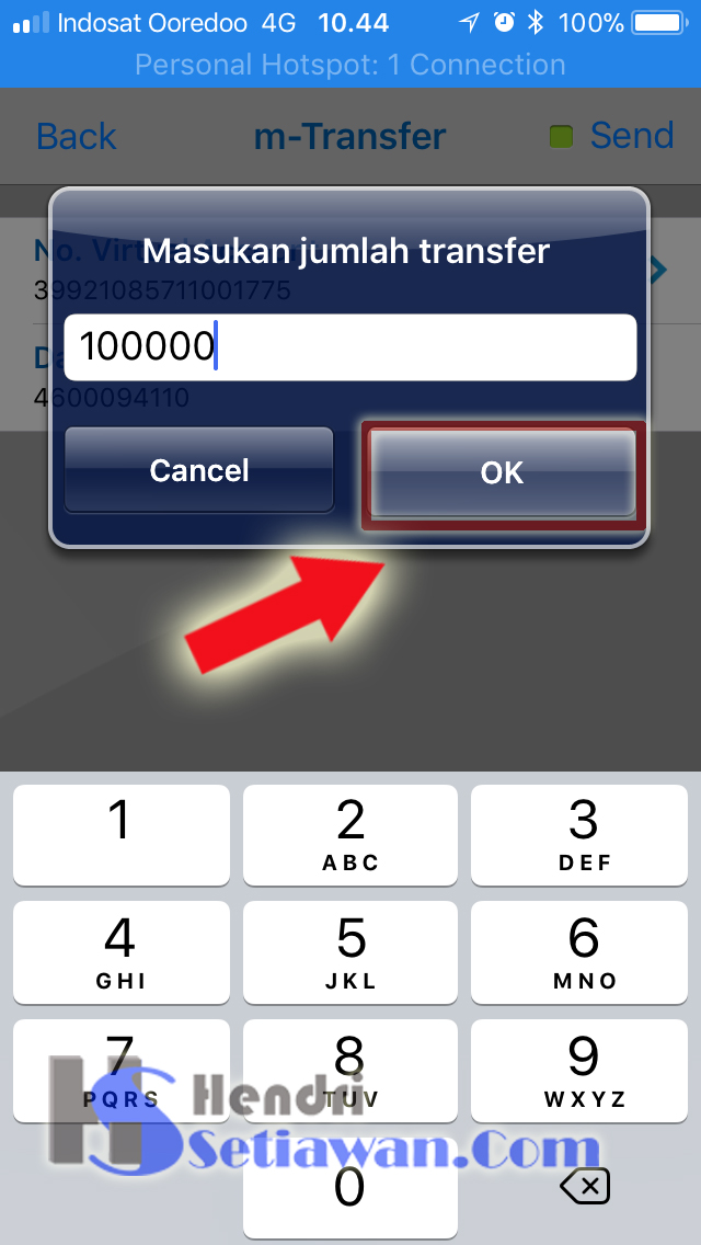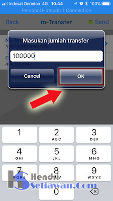 5. Masukkan nilai saldo yang ingin diisi, misalnya Rp.100.000. Kemudian input PIN M-banking anda
