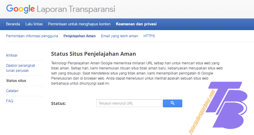 Laman ini adalah untuk mengecek apakah situs berbahaya atau tidak, jika terbukti berbahaya segera atasi dan jika tidak berbahaya maka anda tidak usah khawatir, namun untuk lebih baiknya agar mengatasi semua situs perujuk blog yang dianggap membahayakan (walaupun tidak berbahaya).