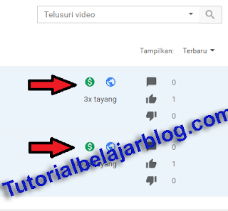 11. Maka video sudah dimonetisasi (Simbol $), dan akhirnya kamu bisa menghasilkan uang hanya dengan berbagi video di youtube :D