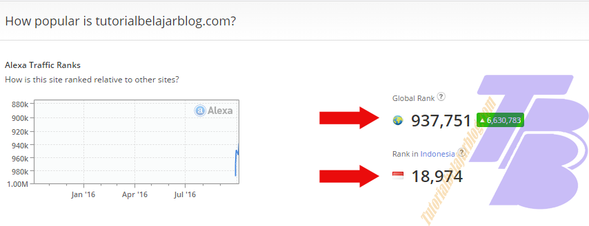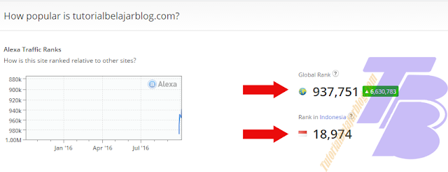 Global rank adalah nilai rank berdasarkan persaingan situs di seluruh dunia, pada blog tutorialbelajarblog.com memiliki rank global 957.751 yang artinya blog tutorialbelajarblog.com peringkat ke-957.751 dari seluruh situs didunia, sedangkan ranking di indonesia memiliki peringkat ke-18.974