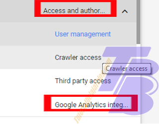 3. Kemudian pilih Acces and authorization > Google Analytics Integration