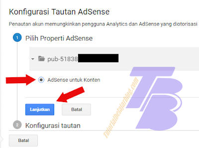 7. Centang Adsense untuk konten jika anda ingin menautkan antara Adsense blog-Google analytics, atau Adsense untuk youtube jika anda ingin menautkan antara Adsense youtube-Google analytics