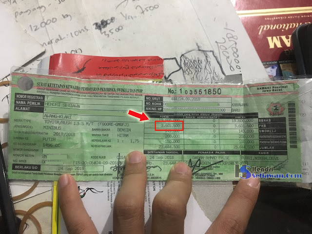 Pada foto diatas bahwa pajak kendaraan All New Rush keluaran tahun 2018 adalah sebesar Rp3.601.500 untuk tahun pertama, namun dengan seiringnya waktu pajak akan berkurang sesuai dengan umur kendaraan.